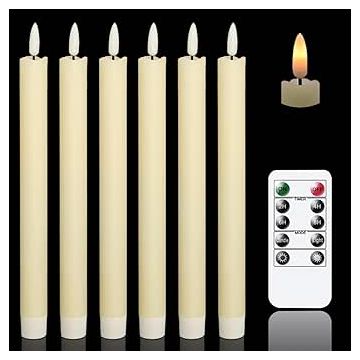GenSwin Flameless Ivory Taper Candles – Flickering LED with 10-Key Remote, Real Wax, Battery Operated, Pack of 6 for Home, Christmas, Wedding Décor